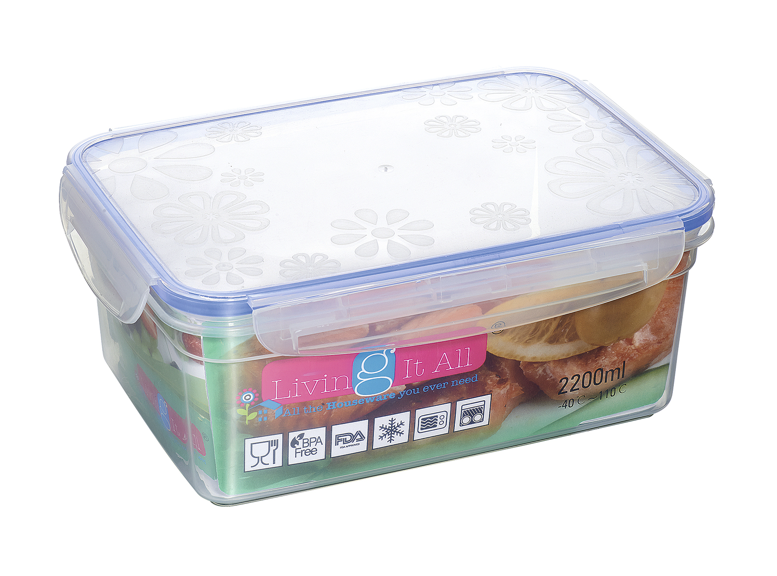 PLASTIC RECT SNAP& LOCK STORAGE CONTAINER 2200ML