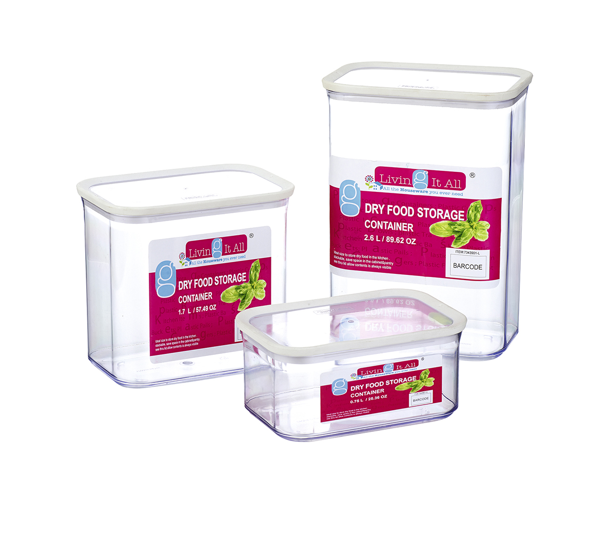 RECT DRY-FOOD STORAGE CONTAINER SET OF 3 PCS 0.75L/1.7L/2.6L