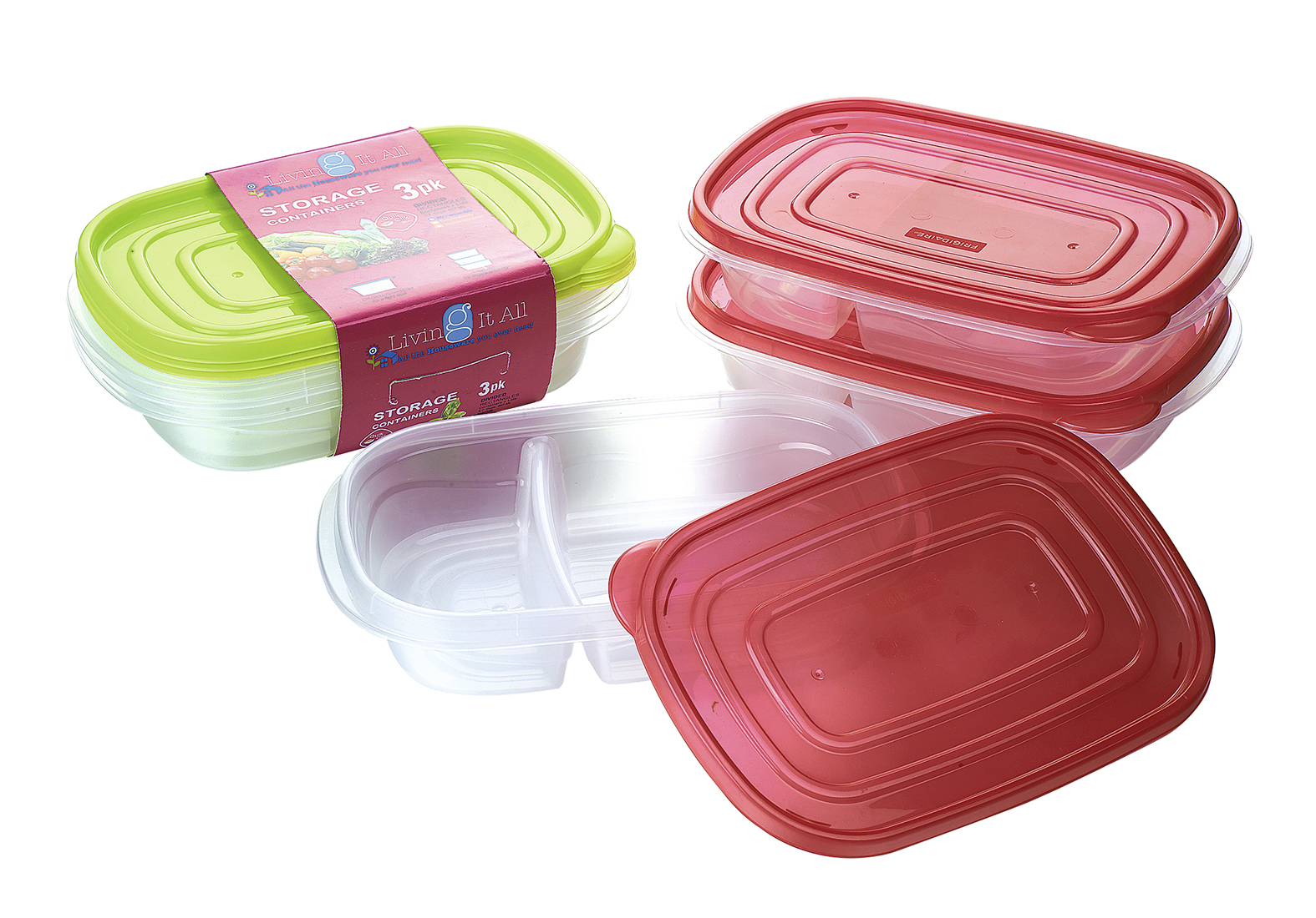 長方形薄壁分隔飯盒887ML 3個/套